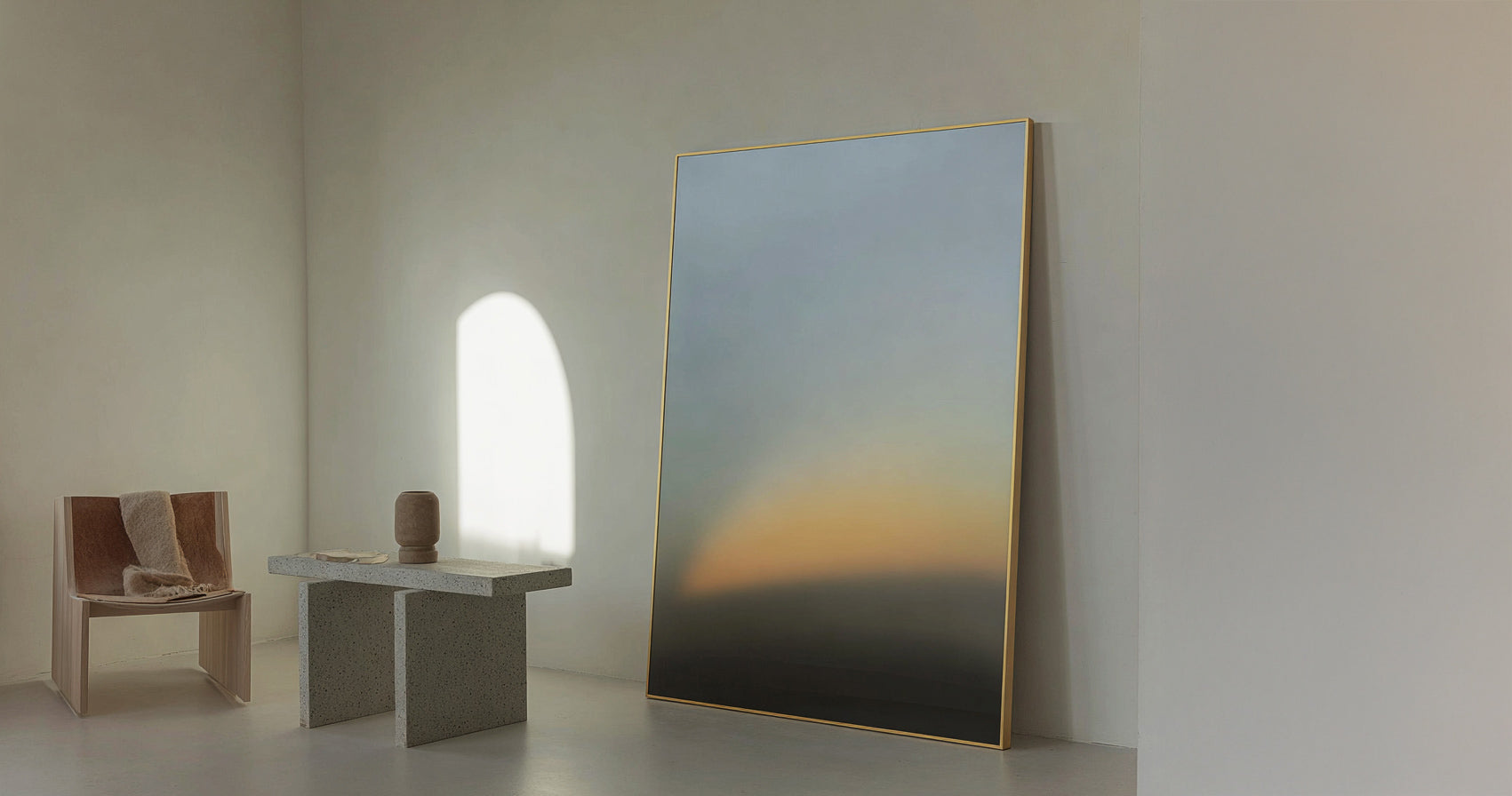 Our art isn’t printed on paper or canvas. We print on brushed aluminium, which gives each piece a unique reflective quality that changes with light throughout the day.
