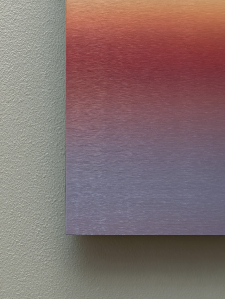 Luminveil is a quiet, atmospheric artwork that shifts softly throughout the day. Its colours open like a gentle veil, revealing new depths as the light in your space moves. The surface reacts subtly to its surroundings, creating a calm, evolving presence that never looks the same twice.